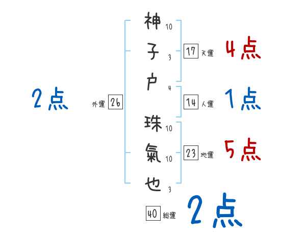 神子戸珠氣也さんの画数の鑑定結果