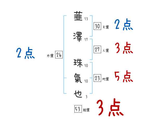 外運![]() | 韮澤珠氣也さんの外運は26画の2つ星!波瀾万丈かも。信頼できる人を大事にしましょう。 生活面を象徴する運勢です。外部から受ける影響力を表し、結婚運、家庭運や職場、環境への順応性を表します。 |