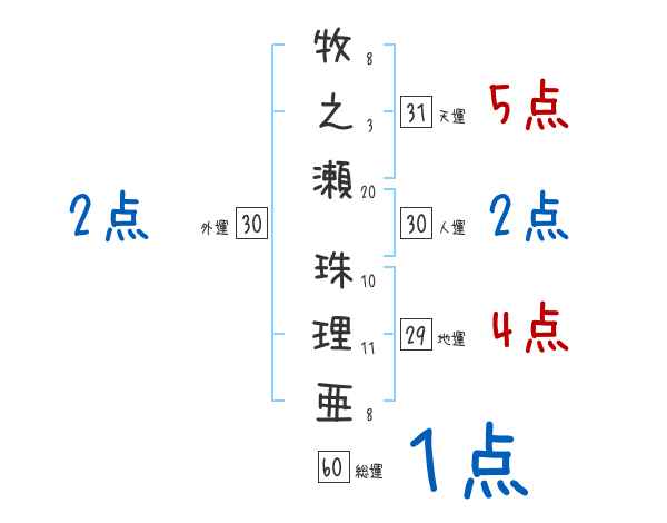 牧之瀬珠理亜さんの画数の鑑定結果