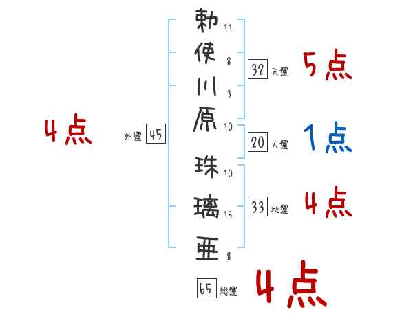 天運![]() | 勅使川原珠璃亜さんの天運は32画の5つ星!柔軟性があり成功する。チャンスが多く金運が良い。 家系が持つ宿命的な運勢を表します。祖先から受け継いだ苗字ですので自分の力が及びません。家柄を象徴します。 |