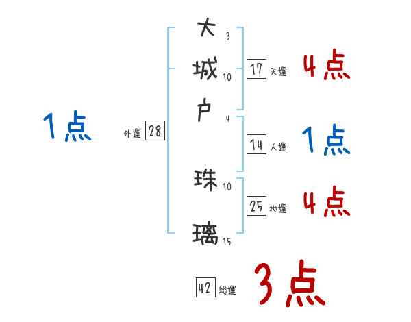大城戸珠璃さんの画数の鑑定結果