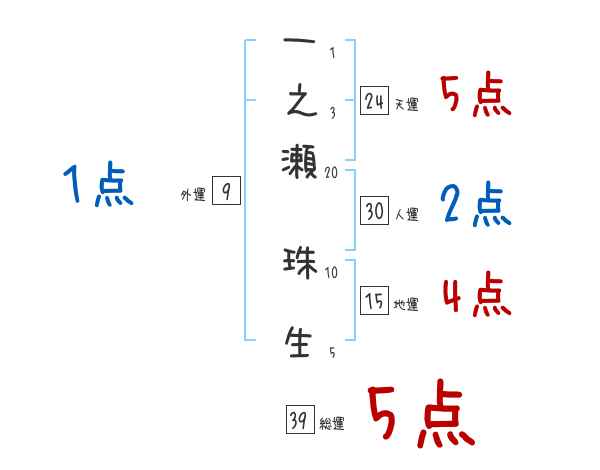 外運![]() | 一之瀬珠生さんの外運は9画の1つ星!消極的で才能を発揮することが苦手なことも。周りの意見に耳を傾けましょう。 生活面を象徴する運勢です。外部から受ける影響力を表し、結婚運、家庭運や職場、環境への順応性を表します。 |