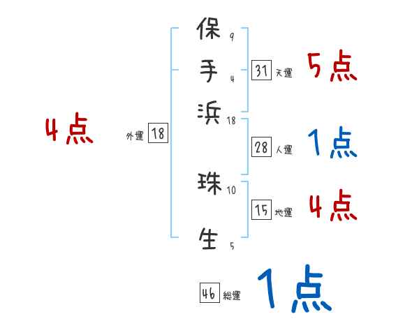 地運![]() | 保手浜珠生さんの地運は15画の4つ星!人徳があり出世する。順調に物事を進め円満な人生。 個性を表す基礎的な運勢です。性格形成や対人関係、行動力など家庭環境に影響されます。主に誕生してから20歳くらいまでの若年期の運勢を表します。 |