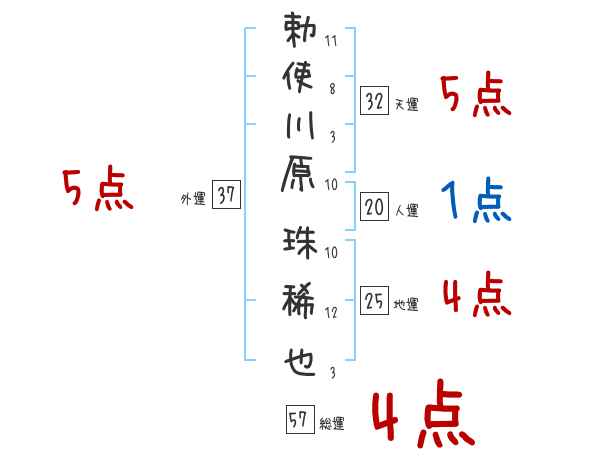 勅使川原珠稀也さんの画数の鑑定結果