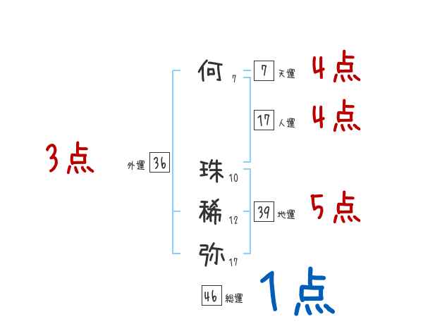 何珠稀弥さんの画数の鑑定結果