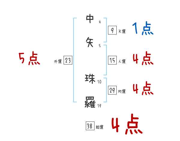 中矢珠羅さんの画数の鑑定結果