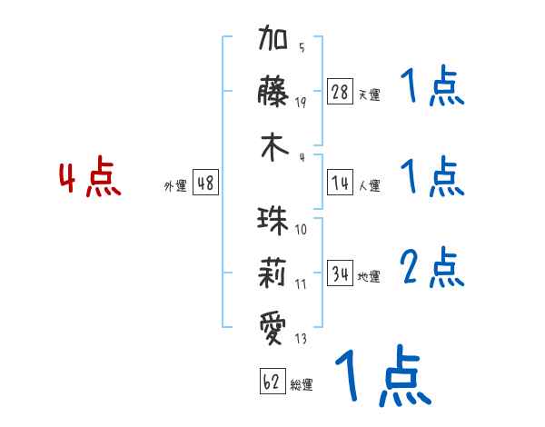 加藤木珠莉愛さんの画数の鑑定結果