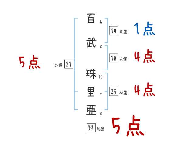 百武珠里亜さんの画数の鑑定結果