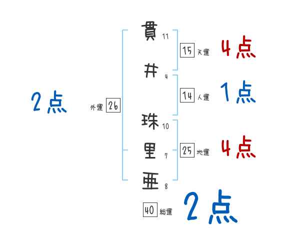 貫井珠里亜さんの画数の鑑定結果