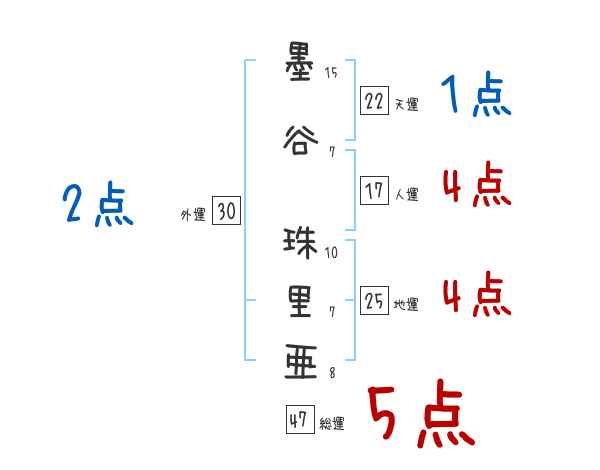 天運![]() | 墨谷珠里亜さんの天運は22画の1つ星!努力することが苦手ないっぽう手先が器用。芸術性にも優れる。 家系が持つ宿命的な運勢を表します。祖先から受け継いだ苗字ですので自分の力が及びません。家柄を象徴します。 |