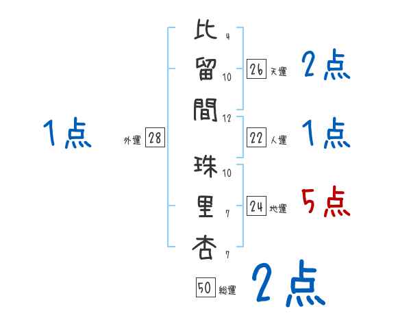 外運![]() | 比留間珠里杏さんの外運は28画の1つ星!家庭環境に注意。スポーツで活躍できる能力があるかも。 生活面を象徴する運勢です。外部から受ける影響力を表し、結婚運、家庭運や職場、環境への順応性を表します。 |