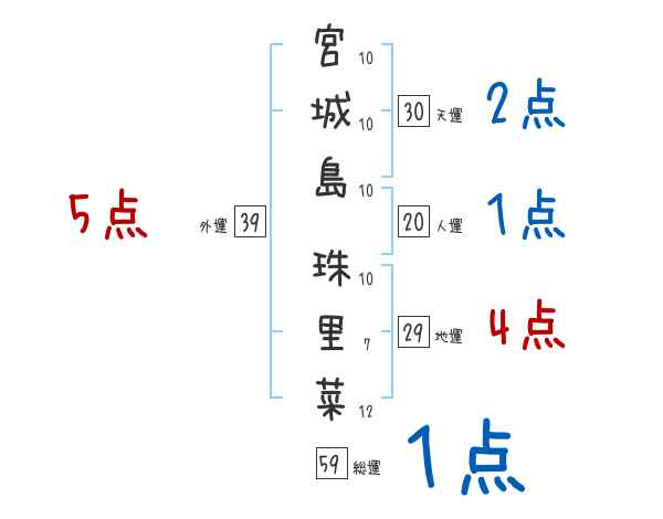 宮城島珠里菜さんの画数の鑑定結果