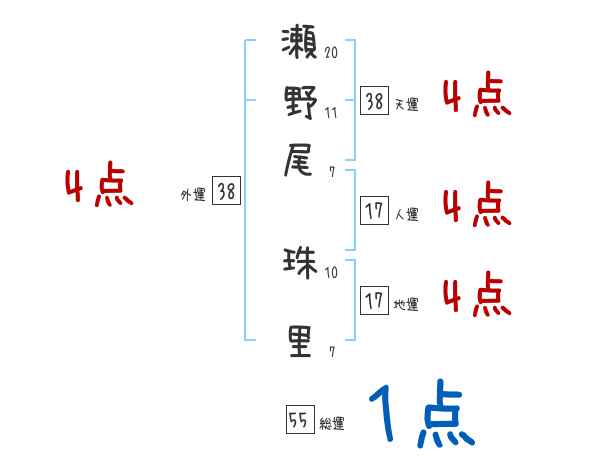 瀬野尾珠里さんの画数の鑑定結果