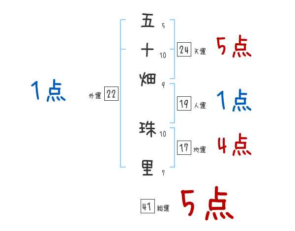 総運![]() | 五十畑珠里さんの総運は41画の5つ星!大志を抱き、目標に向かって実力を発揮し達成する。温和な性格。 あなたの人生を表す1番重要な運勢です。生涯を通じて影響する総合運となり、主に50歳以降の晩年期に影響を及ぼします。 |