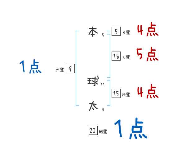本球太さんの画数の鑑定結果