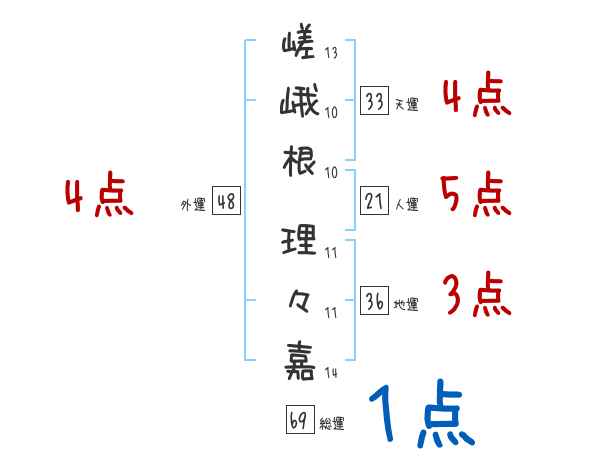 嵯峨根理々嘉さんの画数の鑑定結果