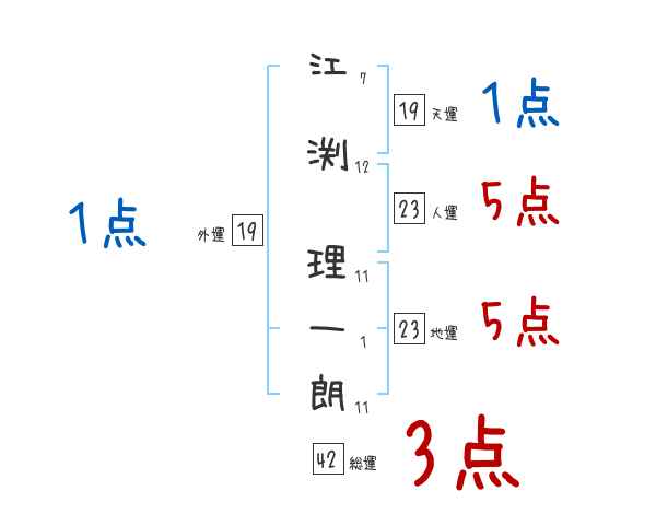 外運![]() | 江渕理一朗さんの外運は19画の1つ星!優れた才能を持ちますが、協調性が足りないことも。周りの人と協力する事を意識しましょう。 生活面を象徴する運勢です。外部から受ける影響力を表し、結婚運、家庭運や職場、環境への順応性を表します。 |