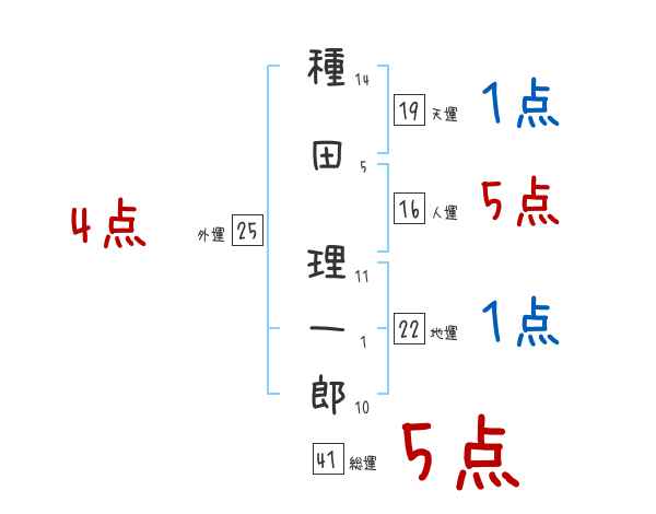 人運![]() | 種田理一郎さんの人運は16画の5つ星!人望が厚く大きく発展する。逆転成功が見える。 性格や才能などを表す2番目に重要な運勢です。人間関係や協調性、社会的な成功に影響します。主に20歳から50歳ぐらいまでの中年期の運勢を表します。 |