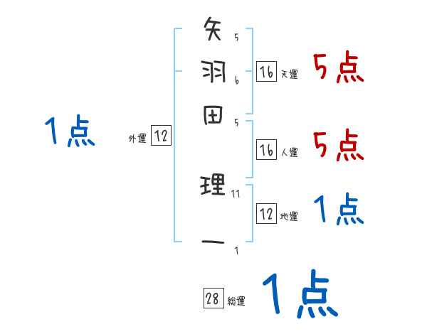 矢羽田理一さんの画数の鑑定結果