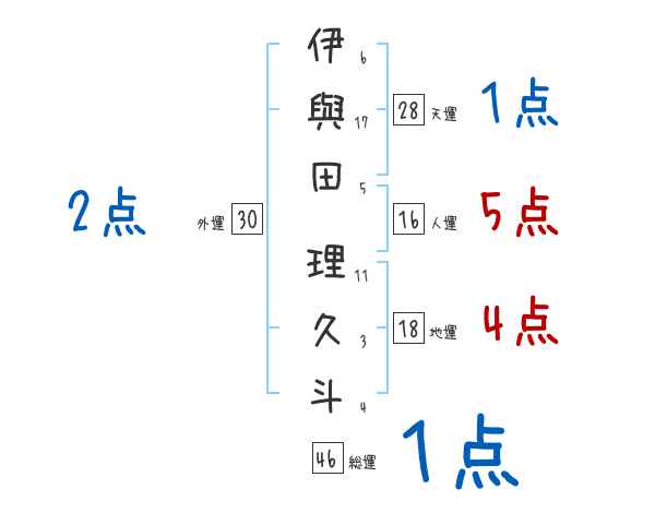 総運![]() | 伊與田理久斗さんの総運は46画の1つ星!迷走することが多く苦労するかも。目先のことにとらわれないように。 あなたの人生を表す1番重要な運勢です。生涯を通じて影響する総合運となり、主に50歳以降の晩年期に影響を及ぼします。 |