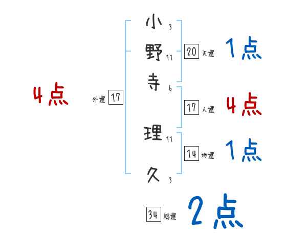 小野寺理久さんの画数の鑑定結果