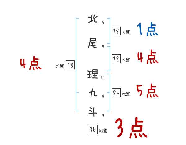 北尾理九斗さんの画数の鑑定結果