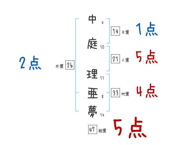 中庭理亜夢さんの画数の鑑定結果