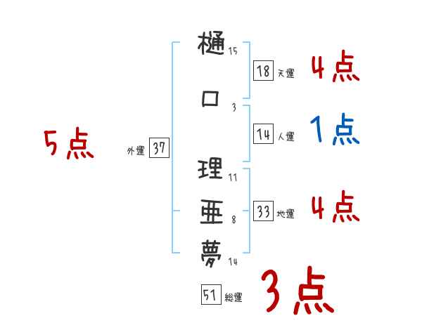 樋口理亜夢さんの画数の鑑定結果