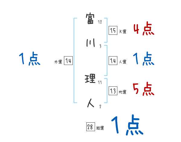 富川理人さんの画数の鑑定結果