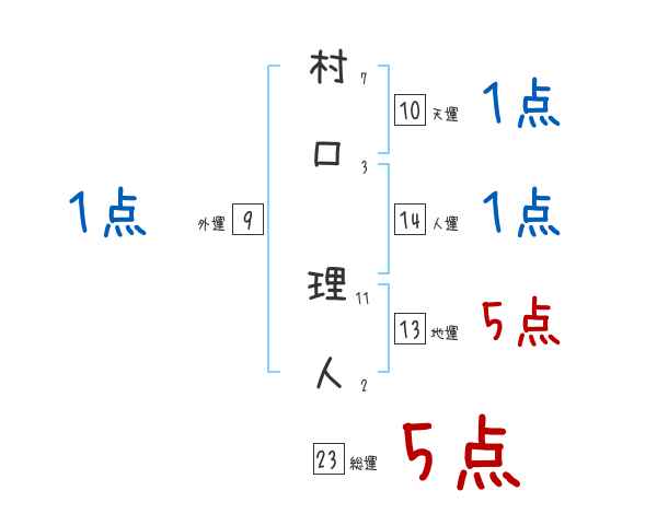 村口理人さんの画数の鑑定結果