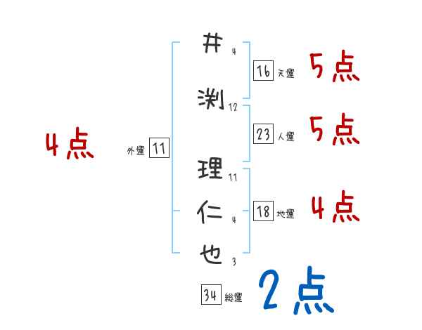 総運![]() | 井渕理仁也さんの総運は34画の2つ星!独創性に優れるが、自尊心が強く災難に注意しましょう。 あなたの人生を表す1番重要な運勢です。生涯を通じて影響する総合運となり、主に50歳以降の晩年期に影響を及ぼします。 |