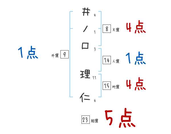 外運![]() | 井ノ口理仁さんの外運は9画の1つ星!消極的で才能を発揮することが苦手なことも。周りの意見に耳を傾けましょう。 生活面を象徴する運勢です。外部から受ける影響力を表し、結婚運、家庭運や職場、環境への順応性を表します。 |