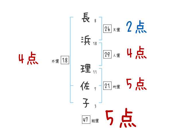 総運![]() | 長浜理佐子さんの総運は47画の5つ星!実力が開花し発展する円満な人生。財に恵まれる。 あなたの人生を表す1番重要な運勢です。生涯を通じて影響する総合運となり、主に50歳以降の晩年期に影響を及ぼします。 |