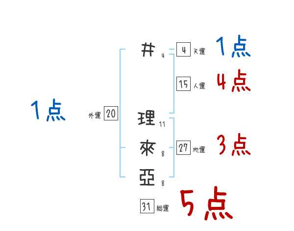 井理來亞さんの画数の鑑定結果
