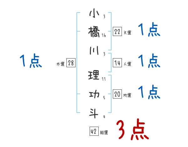 小橋川理功斗さんの画数の鑑定結果