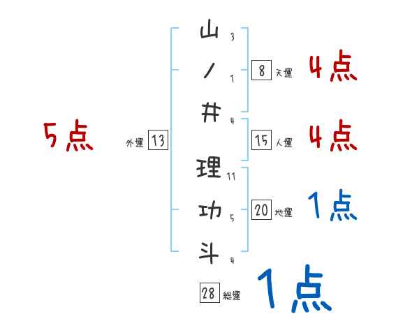 山ノ井理功斗さんの画数の鑑定結果