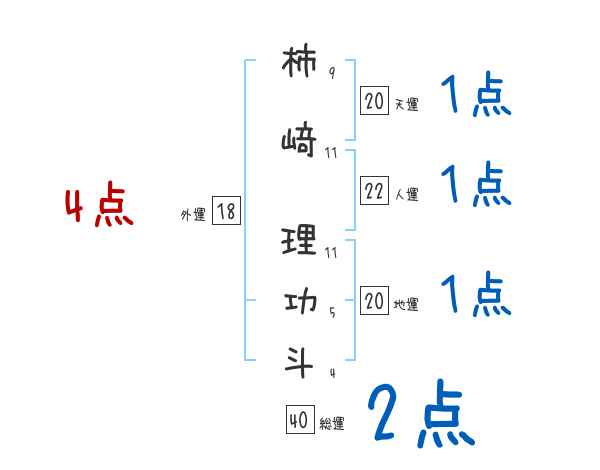 外運![]() | 柿﨑理功斗さんの外運は18画の4つ星!情熱的で剛気。忍耐力があり信頼される。 生活面を象徴する運勢です。外部から受ける影響力を表し、結婚運、家庭運や職場、環境への順応性を表します。 |