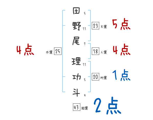 田野尾理功斗さんの画数の鑑定結果