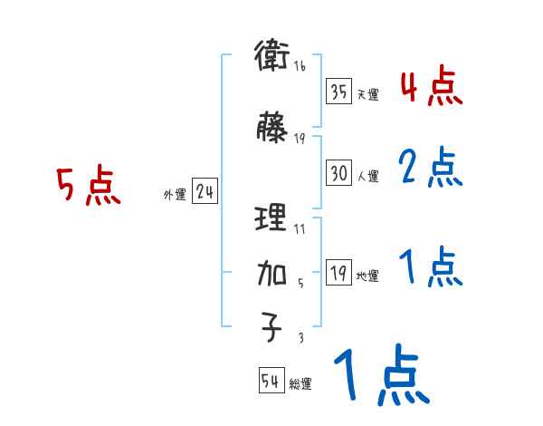 天運![]() | 衛藤理加子さんの天運は35画の4つ星!温厚な性格で感受性が高い。穏和な性格で人望が厚い。 家系が持つ宿命的な運勢を表します。祖先から受け継いだ苗字ですので自分の力が及びません。家柄を象徴します。 |