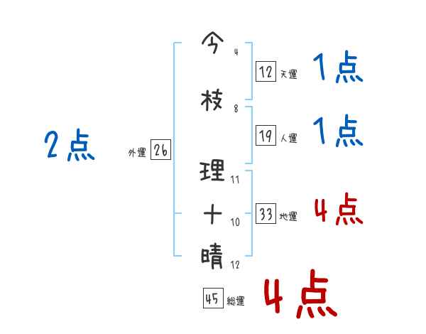 外運![]() | 今枝理十晴さんの外運は26画の2つ星!波瀾万丈かも。信頼できる人を大事にしましょう。 生活面を象徴する運勢です。外部から受ける影響力を表し、結婚運、家庭運や職場、環境への順応性を表します。 |