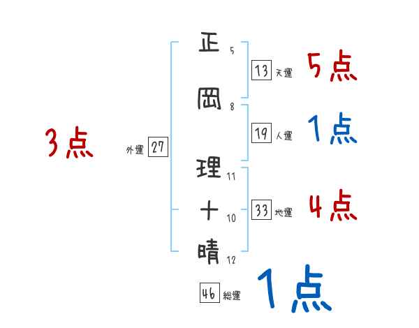 正岡理十晴さんの画数の鑑定結果
