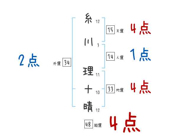 家系が持つ宿命的な運勢を表します。祖先から受け継いだ苗字ですので自分の力が及びません。家柄を象徴します。