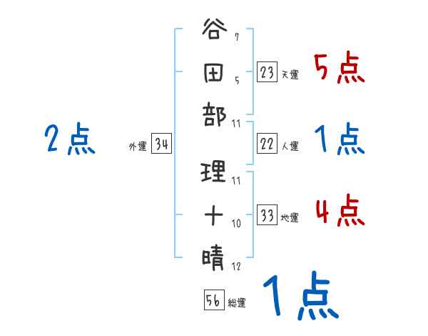 谷田部理十晴さんの画数の鑑定結果