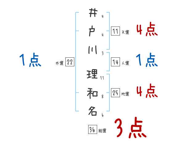 井戸川理和名さんの画数の鑑定結果