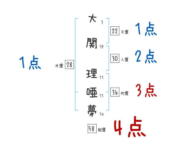 家系が持つ宿命的な運勢を表します。祖先から受け継いだ苗字ですので自分の力が及びません。家柄を象徴します。
