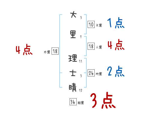 大里理士晴さんの画数の鑑定結果