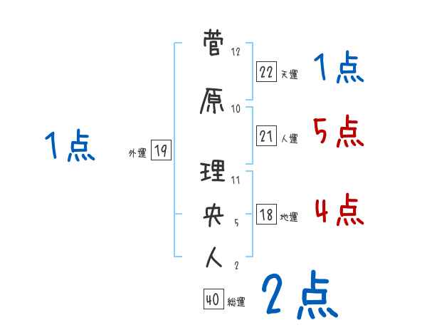 菅原理央人さんの画数の鑑定結果