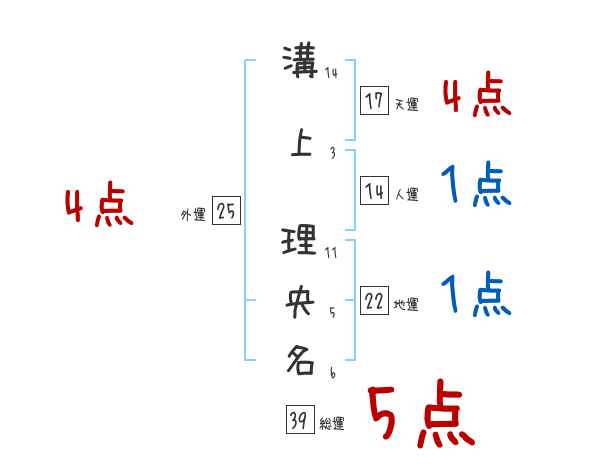 総運![]() | 溝上理央名さんの総運は39画の5つ星!社交性に優れ人望が厚い。人の上に立ち成功する。 あなたの人生を表す1番重要な運勢です。生涯を通じて影響する総合運となり、主に50歳以降の晩年期に影響を及ぼします。 |