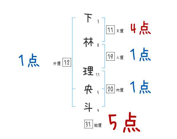下林理央斗さんの画数の鑑定結果