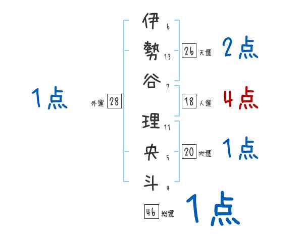 外運![]() | 伊勢谷理央斗さんの外運は28画の1つ星!家庭環境に注意。スポーツで活躍できる能力があるかも。 生活面を象徴する運勢です。外部から受ける影響力を表し、結婚運、家庭運や職場、環境への順応性を表します。 |